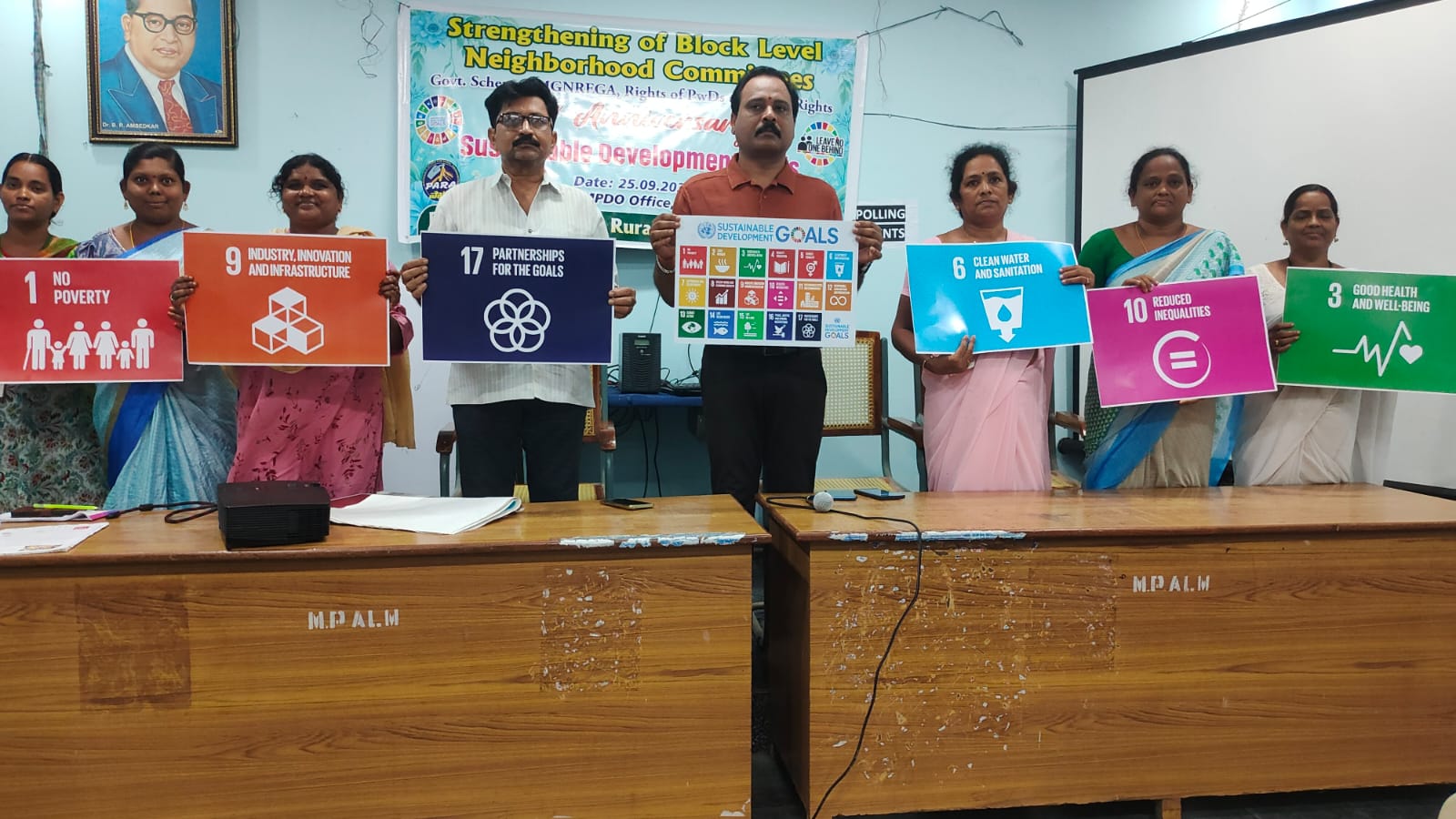 On 25th September 2025, a special program on Strengthening of Block Level Neighbourhood Committees was held at the MPDO Office, Alamuru, marking the 10th Anniversary of the Sustainable Development Goals (SDGs). The event focused on government schemes, MGNREGA, rights of Persons with Disabilities (PwDs), child rights, and the role of grassroots communities in achieving the SDGs.