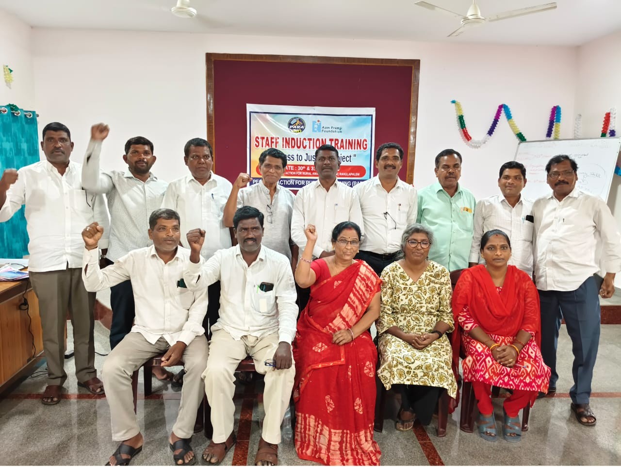 A two-day Staff Induction Training for the Access to Justice Project was conducted on 30–31 January 2025 to orient newly appointed staff members to the organization’s vision, history, and project framework. The training aimed to build a shared understanding of strengthening access to justice for Dalit communities in Andhra Pradesh and Telangana.